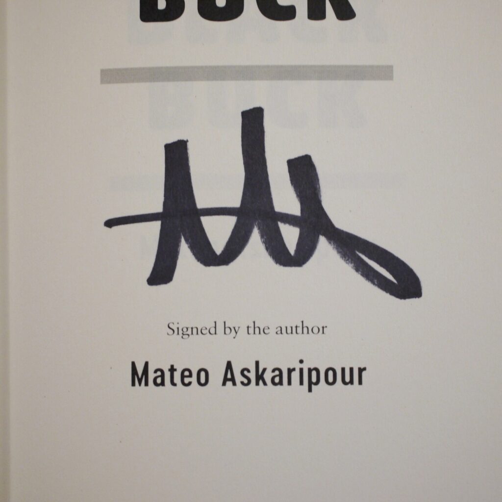Author: Mateo Askaripour (Signed Copy)Title: Black BuckPublication: First Edition 1st Impression Published By John Murray London 2021………….   (See (Pictures)Condition of the Book and Dust-Jacket:This is a Fine Copy of this Book in a Fine Dust-Jacket.Lovely copy with no faults and has not been read and as good as it gets in terms of condition.Signed by Author Mateo Askaripour on the Title Page.Great copy for the collector,8vo 388pp First Edition 1st Impression [2021]        Sent Free Within The UK…Overseas Postage Air-Mail .All Orders Shipped in a Box and Sent With Tracking                                                        We are PBFA Members and Adhere to Their Rules