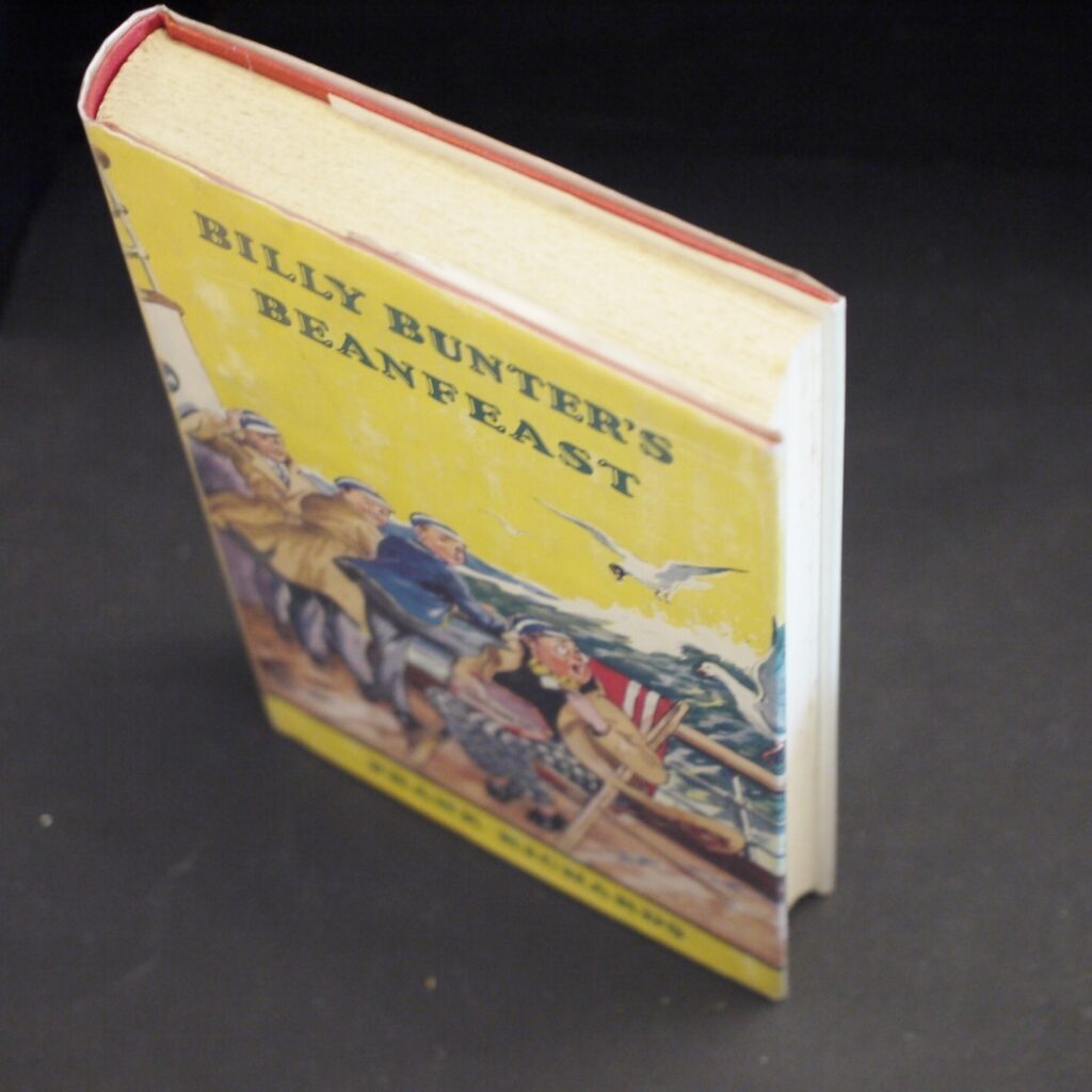 Author: Frank Richards (illustrated by R.J. Macdonald)Title: Billy Bunter’s Beanfeast  Publication: First UK Edition 1st Impression Published By Cassell & Company London 1952………(See (Pictures)Condition and Status of the Book and Dust-Jacket:This is a Very Good + Copy of this Book in Publisher’s red cloth with bright and vivid black title lettering to spine and upper cover,in a Very Good + Dust-jacket,with just a little light rubbing along extremities of the dust-jacket.Significantly there is NO fading to the red lettering along spine of the dust-jacket,with one number 11 to head of spine in pencil (can be erased) Not price clipped with 7s 6d net showing to the front flap of the dust-jacket.A tight firm copy with just a little spotting to the text block edges.This copy has NO former owner’s names or inscriptions present.The book has a firm binding with no hinge weakness and there is no leaning or rolling to spine.Illustrated by R.J. Macdonald with a coloured frontispiece and line drawings in black and white.The dust-jacket is well protected in a removable cover sleeve.The book was acquired from the private library of a discerning and avid collector of rare children’s books.Uncommon in this condition.8vo 240pp First Edition 1st Impression [1952]      Free Sent Within The UK…Overseas Postage All Order Shipped in a Box and With Tracking                                                        We are PBFA Members and Adhere to Their Rules