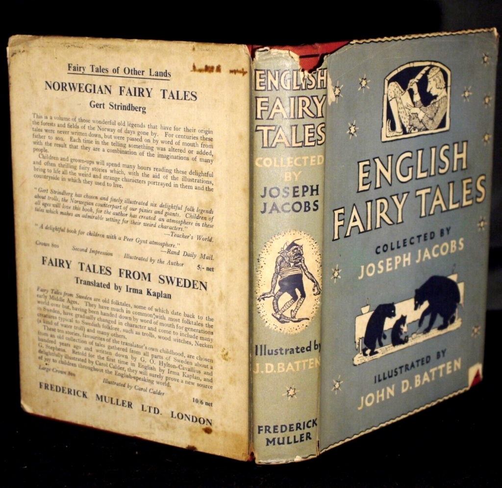 Author: Joseph Jacobs (Collected By) Title: English Fairy Tales Publication:  Fifth Impression Published By Frederick Muller Ltd London 1956…. (See (Pictures)Condition and Status of the Book and Dust-Jacket:This is a Very Good Copy of this Book in red coloured cloth boards with black title lettering to spine and upper cover in a Good Dust-Jacket that has several small nicks and tears to the outer edges of the dust-jacket with some staining to the rear of the dust-wrapper.Not price clipped,The book has one ‘Birkenhead Education Committee’ stamp to the front endpaper and one on page 98.Binding remains firm with no hinge weakness.Illustrated with black and white drawings by John Batten.Fifth Impression stated to the copyright page and Fourth Impression in this Form stated on the front flap of the dust-jacket.Top edge of the book is stained red.8vo 331pp Reprint [1956]    Free Sent Within The UK…Overseas Postage All Order Shipped in a Box and With Tracking                                                 We are PBFA Members and Adhere to Their Rules