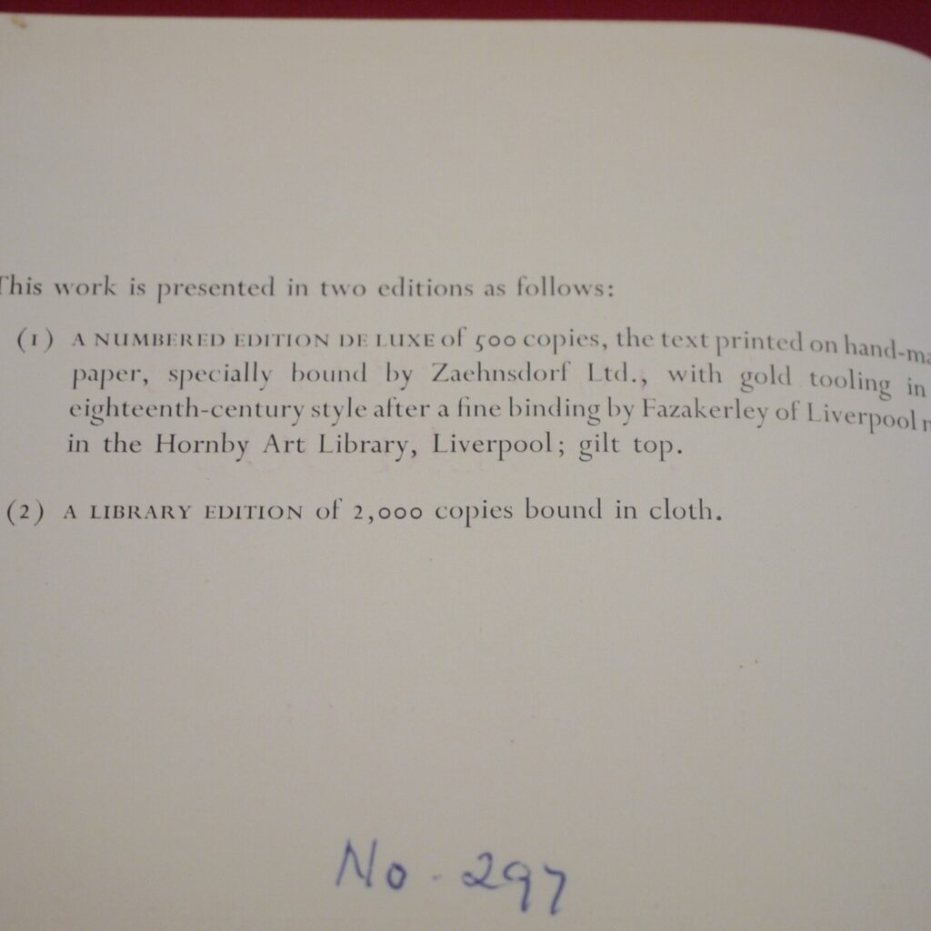 Author: George Chandler                                                                                                                                        Title: William Roscoe of Liverpool                                                                                                                                           Publication: Limited Edition Published By B.T. Batsford London 1953……… (See Pictures)            Condition Of Book:              First Edition Very Good Copy in Full Red Buckram De Luxe Edition bound of Zaehnsdorf and printed on hand made paper.This is one of only 500 Limited and Numbered Copies with this copy being no 297.Lovely gold tooling to the front and rear cover and with gilt decorated turn ins.Top edge of the book is in gilt with other page edges deckled or rather rough cut.With colour fold out of Liverpool still present.Lovely tight clean copy for the collector with just a little light mottling to the outer boards.8vo 470pp Limited Edition [1953]  Free UK Postage with TrackingAir-Mail with Tracking Sent Overseas and Shipped in Box  We are full-time booksellers and members of the PBFA and adhere to their Guidelines