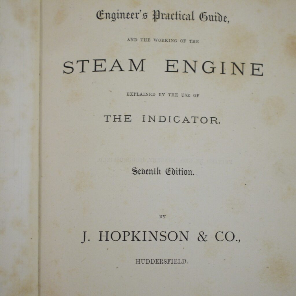 Author: J Hopkinson & Co Title: The Engineer’s Practical Guide And The Workings of the Steam Engine Explained By The Use of the Indicator Publication: Seventh Edition Published By The Authors at Britannia Works in Huddersfield 1875…….(See (Pictures)Condition and Status of the Book:This is a Good Only Copy of this Book in green cloth boards with leather suede spine in brown and with gilt title lettering and gilt design to the front cover.There is wear and some splitting to the leather spine of the book with faded lettering to spine.Brown matt endpapers and with one previous inscription to the verso of the front endpaper.With illustrated frontispiece and title page.Well illustrated work with engravings and diagrams on the best mode of producing the greatest amount of power from a given quantity of steam with the least expenditure of fuel.Binding remains firm with NO loose pages,some foxing is present to the preliminary pages.Rare title of the 7th Edition which has been revised and enlarged,8vo [1875]           Free Sent Within The UK…Overseas Postage All Orders are Shipped in a Box and sent with Tracking                                                        We are PBFA Members and Adhere to Their Rules