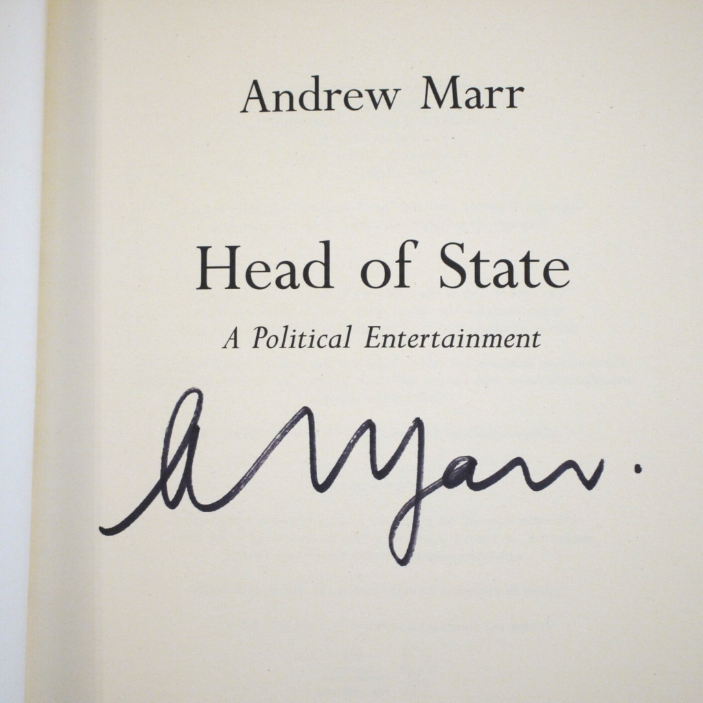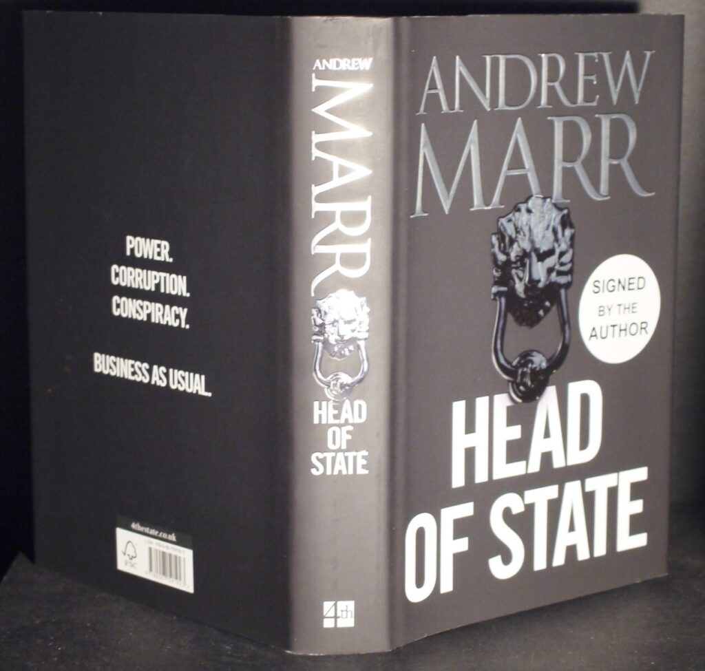 Author: Andrew Marr (Signed Copy)Title: Head of StatePublication: First UK Edition 1st Impression  Published By Fourth Estate London 2014……………..(See (Pictures)Condition and Status of the Book and Dust-Jacket:This is a Fine Copy of this Book in a Fine Dust-Jacket.Superb Copy (As New) This copy has been Signed by Andrew Marr on the Title Page.This is a superb unread copy for the collector with crisp white page edges.We have recently acquired a large and wonderful collection of approx 1000 Signed Modern Firsts from a retired bookseller.All in ‘As New’ Condition and unread,with many Signed and Dated and there are many Signed Limited Editions also.The genre’s include Children’s Crime Fiction,Fantasy,Science Fiction,Horror and Historical Fiction.The book will be Posted securely in a box and sent with tracking.8vo First UK Edition 1st Impression [2014]       Free Sent Within The UK…Overseas Postage All Order Shipped in a Box and With Tracking                                                        We are PBFA Members and Adhere to Their Rules