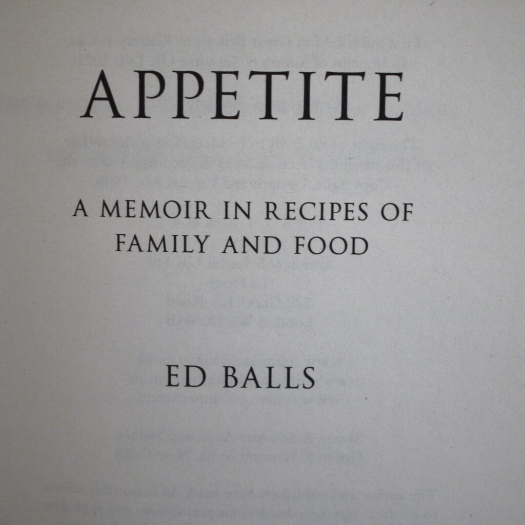 Author: Ed Balls (Signed Copy)Title: AppetitePublication: First Edition 1st Impression Published By Gallery Books London 2021….   (See (Pictures)Condition of the Book and Dust-JacketThis is a Fine Copy of this Book in a Fine Dust-Jacket.Lovely copy with no faults and has not been read so (As New) and as good as it gets in terms of condition.Signed by Ed Balls to the front endpaper within a box specially made for his signature.Lovely work by this former Labour Politician and TV celebrity with over thirty of his favourite childhood recipes.8vo First Edition 1st Impression [2021]       Sent Free Within The UK…Overseas Postage Air-Mail .All Orders Shipped in a Box and Sent With Tracking                                                        We are PBFA Members and Adhere to Their Rules