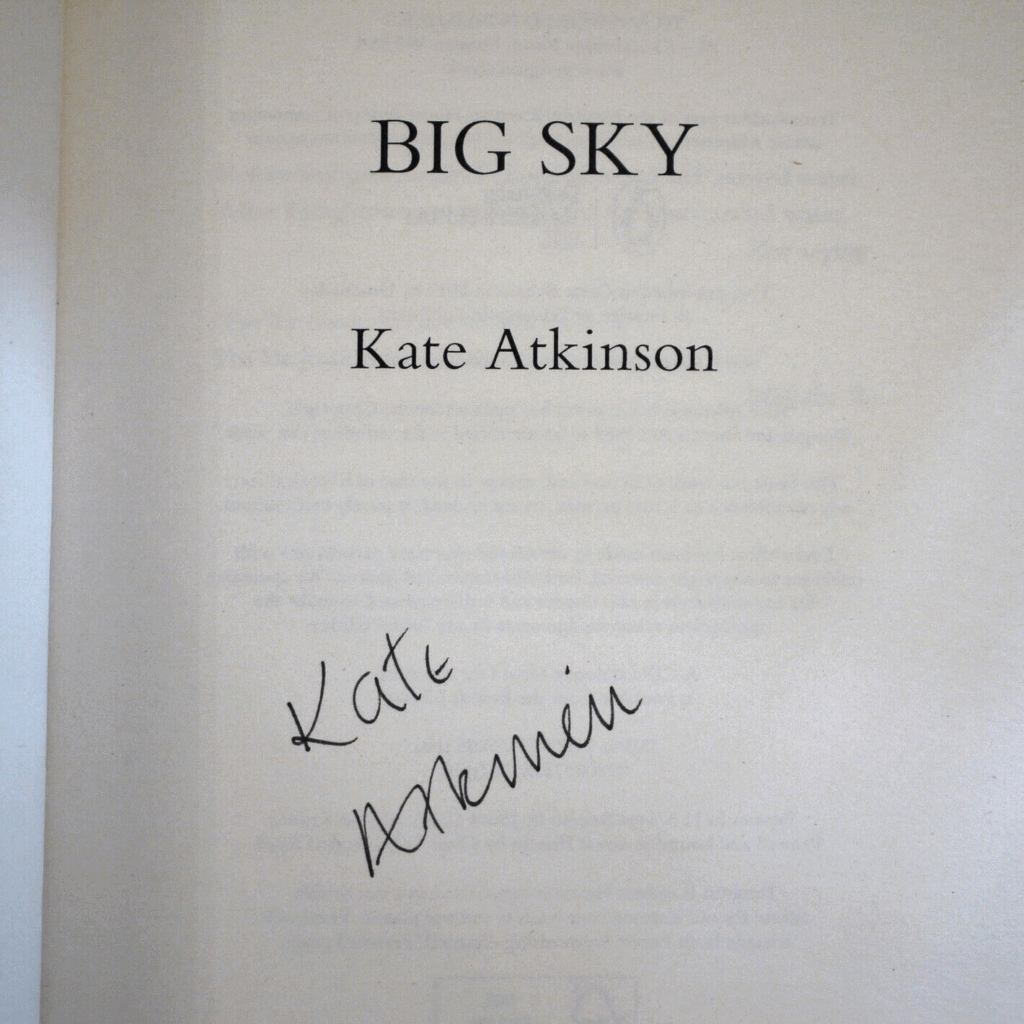 Author: Kate Atkinson (Signed Copy)Title: Big SkyPublication: First Edition 1st Impression Published By Doubleday London 2019….   (See (Pictures)Condition of the Book and Dust-JacketThis is a Fine Copy of this Book in a Fine Dust-Jacket.Lovely copy with no faults and has not been read so (As New) and as good as it gets in terms of condition.SIGNED by Kate Atkinson on the Title Page.With Blue Sprayed Edges that remain as vibrant as when First Published.Great copy for the collector,8vo First Edition 1st Impression [2019]        Sent Free Within The UK…Overseas Postage Air-Mail .All Orders Shipped in a Box and Sent With Tracking                                                        We are PBFA Members and Adhere to Their Rules